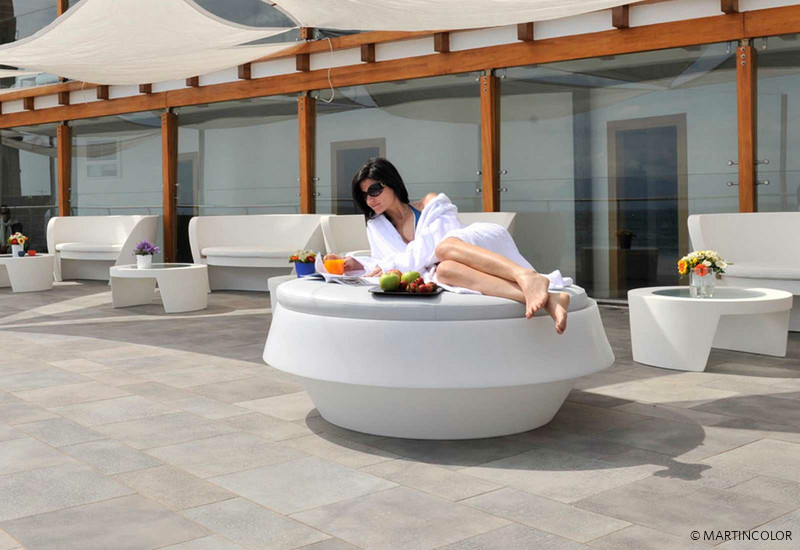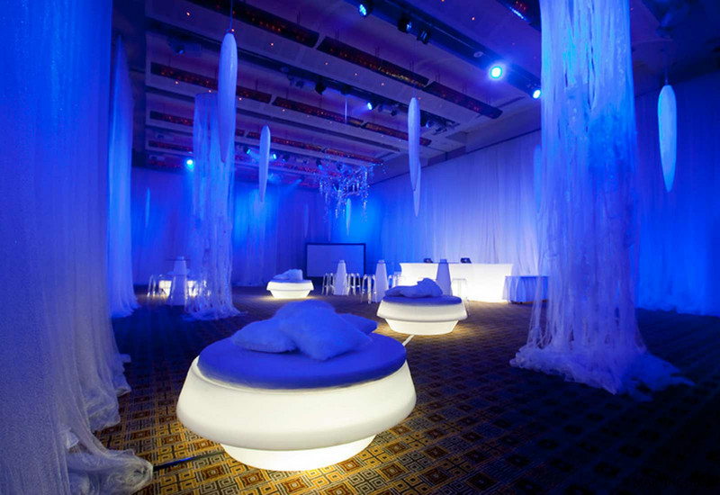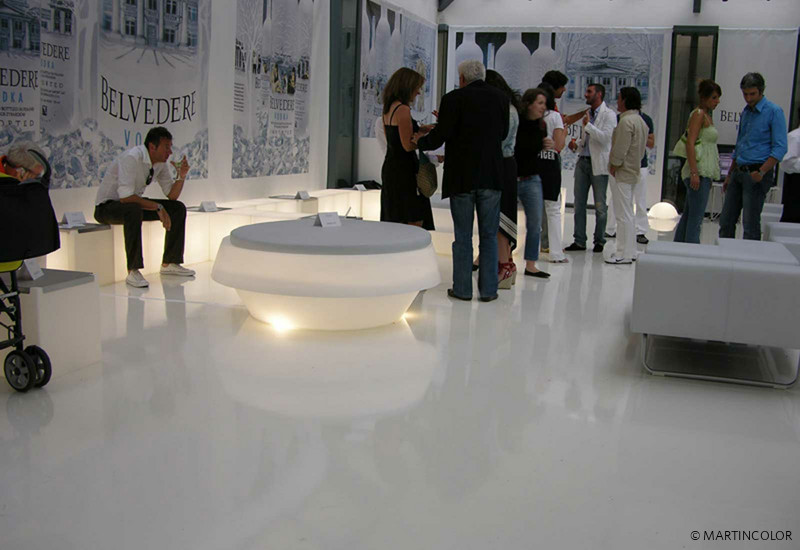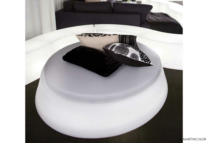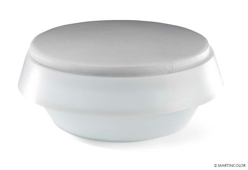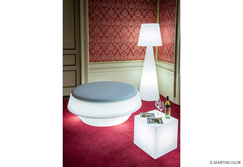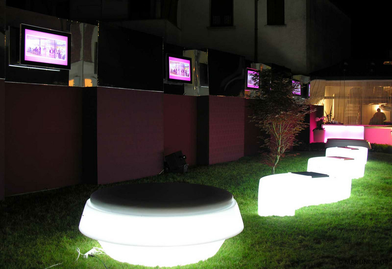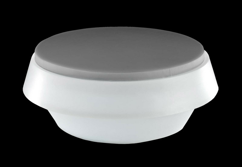 Das Designersofa Giò Pouf bereichert die Sitzmöglichkeiten auf Ihrer Messe, Ihrem Event, Ausstellung oder Veranstaltung. Es bietet höchsten Sitzkomfort und ist "rundherum" nutzbar. Durch den beleuchteten Korpus aus wetterfestem Polyethylen fällt das Leuchtsofa Giò Pouf besonders ins Auge. Die leuchtende Sitzinsel Giò Pouf ist natürlich auch für Draußen geeignet. Nur bei Regen empfehlen wir, das graue Sitzkissen herunterzunehmen. Der Giò Pou ist 53 cm hoch und besitzt einen Durchmesser von Ø 145 cm.