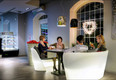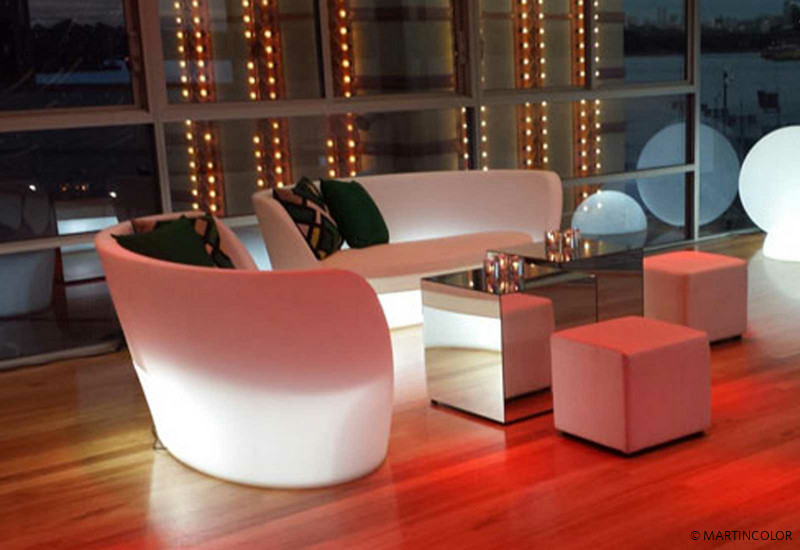 Ganz neu und ein Eyechatcher auf jeder Veranstaltung, Messe oder im In- und Outdoor Launchbereich ist das dekorative, leuchtende Sofa RAP. Das Designer-Sofa wurde von Karim Rashid kreiert und bietet bequem Platz für zwei Personen. Die Sitzhöhe beträgt 36 cm, das Gewicht 35 kg. Das Sofa RAP ist neben der beleuchteten Version auch in lackierten Sonderfarben erhältlich. Das leuchtende Sofa RAP besteht aus 100% recyclebarem Polyethylen, ist wetterfest und mit zwei Fassungen für E27 Energiesparlampen versehen. Die Leuchtmittel sind nicht im Lieferumfang enthalten. Die Indoor-Version verfügt über ein weißes Kabel, die Outdoor-Version über ein schwarzes Kabel. Auf Wunsch kann zu dem Leuchtsofa RAP auch eine weiche Sitzablage aus Soft-Polyurethane, wahlweise in den Farben weiß, grau oder dunkelgrau, bestellt werden.